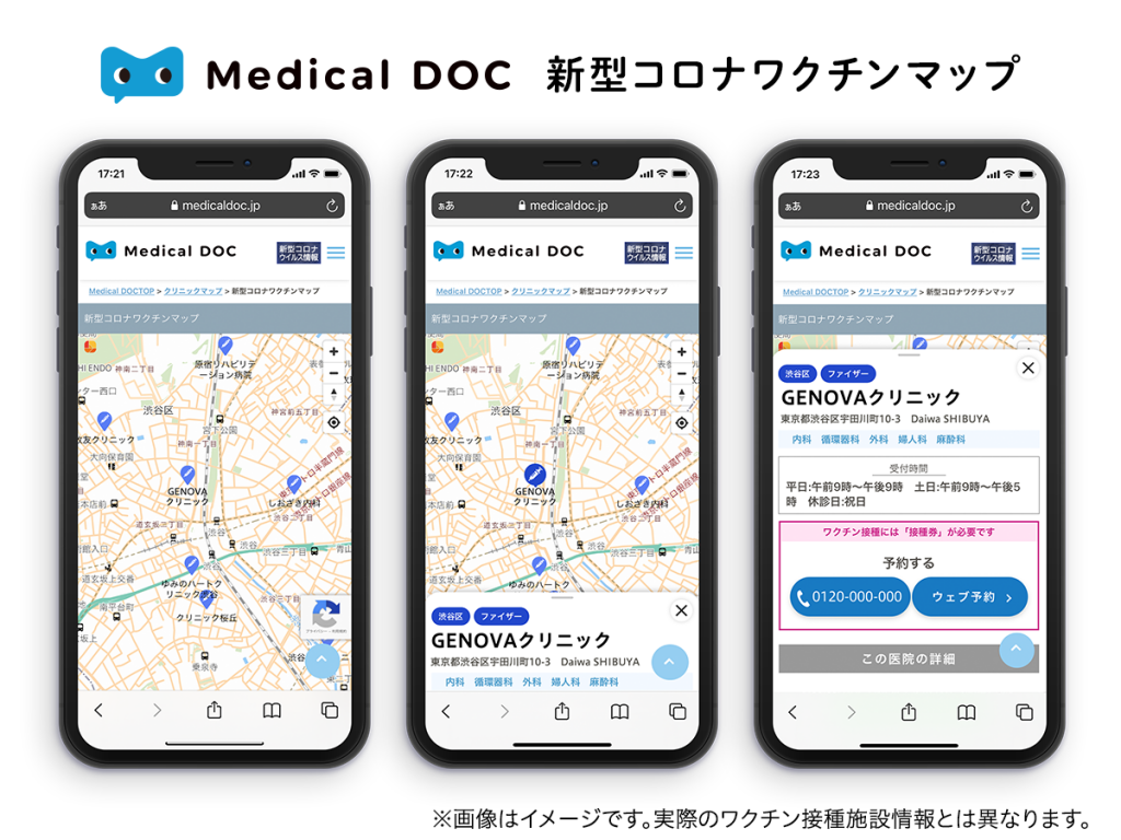 株式会社GENOVA(本社:東京都渋谷区、代表取締役社長:平瀬智樹/以下:GENOVA)は、2021年6月1日、自社で提供する医療分野のオンラインプラットフォーム『Medical DOC(メディカルドキュメント)』(https://medicaldoc.jp/ )にて、『新型コロナワクチンマップ』と『自費PCR検査マップ』の機能の提供を開始しました。